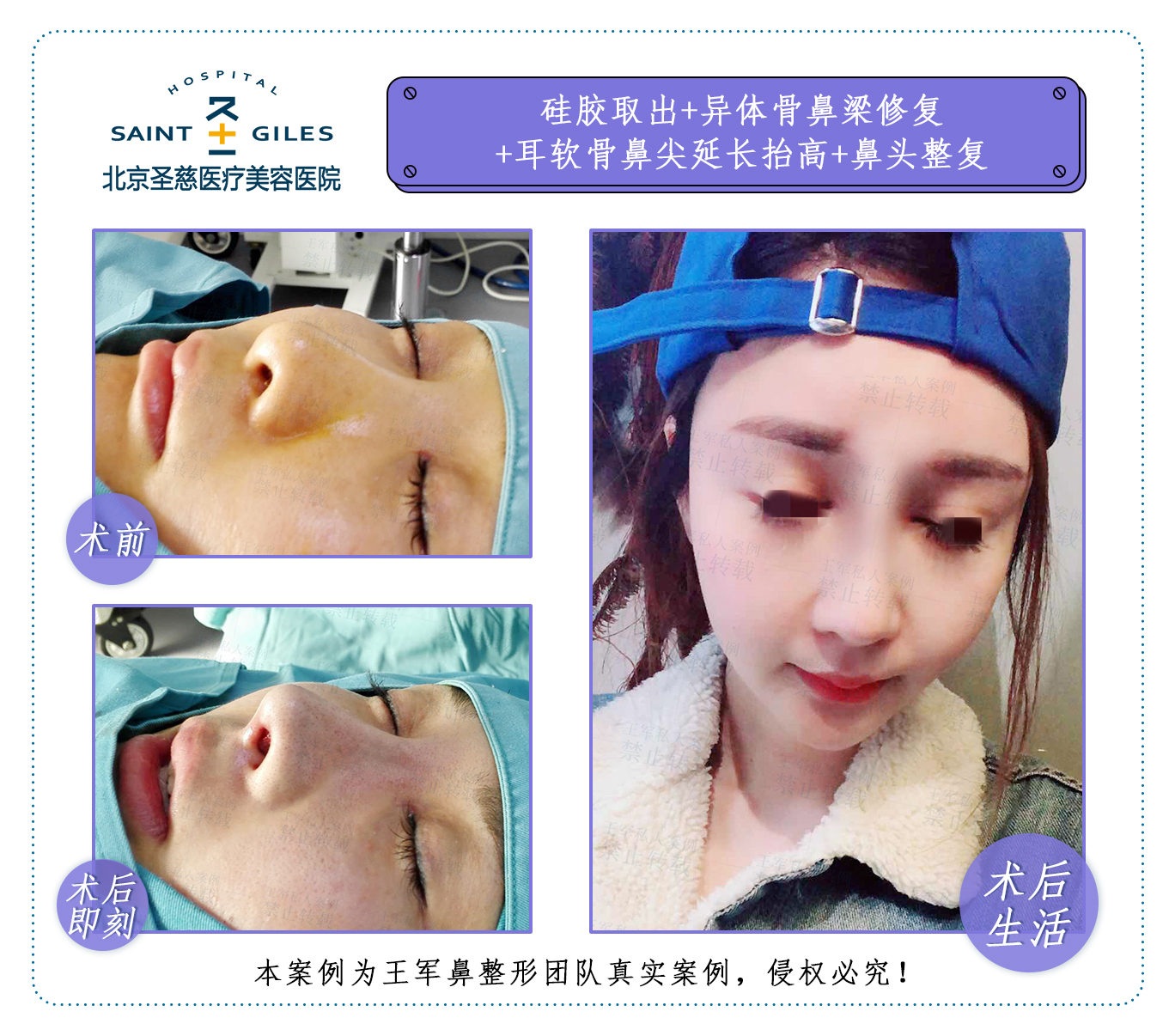 王军:曾任北京大学第三医院成形科主任,是国内早期开展整形外科手术的医生之一。从业35年,专门做鼻子的医生,擅长高难度鼻修复手术、异体骨鼻综合手术、自体软骨鼻综合手术。拒绝流水线一般的整形模式,保留并精进鼻孔内切口手术技术,升级三维定位鼻头整复缩小术,微化处理隆鼻材料,更新鼻整形技术,案例非常多,术后效果反馈较好!